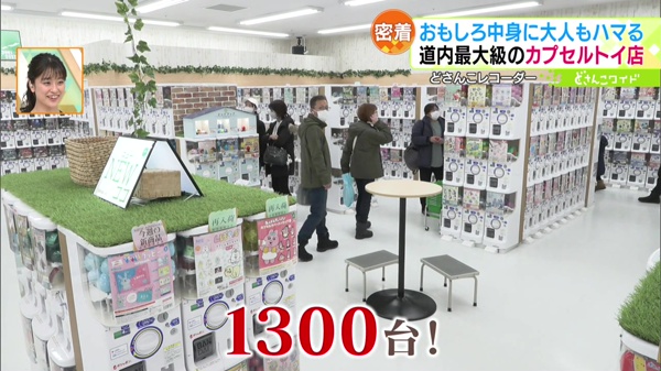 昨年10月にオープン。開店から1ヵ月で5万人が来場し、多い日で1日5000人が訪れる、道内最大級のカプセルトイ専門店です。店内には1300台ものカプセルトイがずらりと並んでいます。