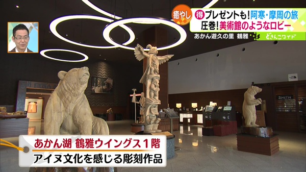 まずは隣にある「鶴雅ウイングス」で、阿寒の芸術作品を堪能しました。