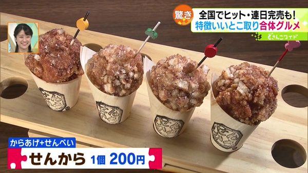 からあげとせんべいの美味しさが合体した「せんから」。鶏肉のジューシーさとザクッとした食感が重なる味わい、後から甘辛いせんべいの風味がやってきます。その他