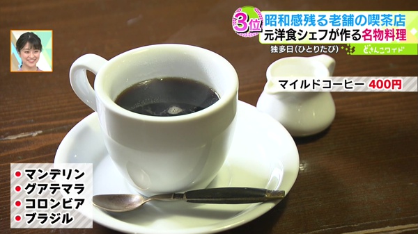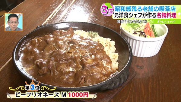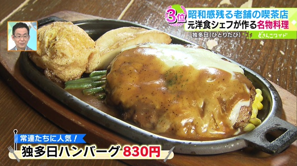 もう一つ人気なのが「独多日ハンバーグ」。美味しさの秘密は、玉ねぎの分量が多いこと。単品で注文できるので、「ビーフリオネーズ」にのせて楽しむお客さんもいます。