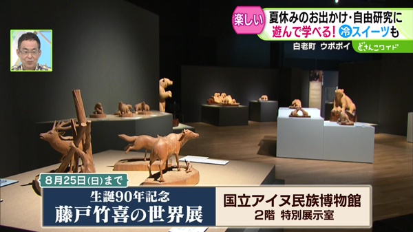 北海道を代表する木彫り職人・藤戸竹喜の生誕90年を記念した特別展が、8/25(日)まで開かれています。藤戸竹喜の代表作91点を展示したイベント。写真撮影もOKなので自由研究にもオススメです。