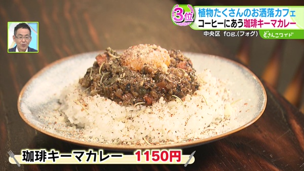 常連客絶賛の人気メニュー「キーマカレー」をご紹介しました。5種類のスパイスをオリジナルの調合でつくっていて、ハンドドリップしたあとのコーヒーガラを隠し味に加えています。