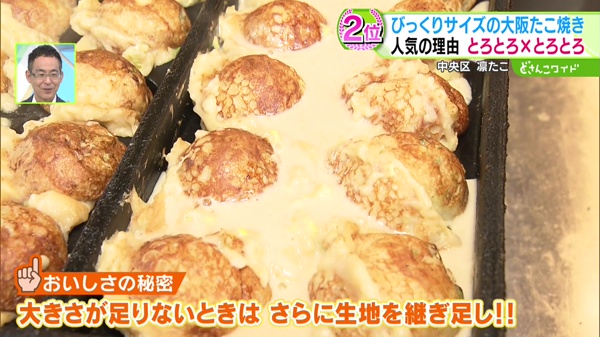 生地をどんどん継ぎ足して作っていくので、特大サイズの「たこ焼き」が出来上がります。研究に研究を重ねた味と食感も人気のヒミツです。
