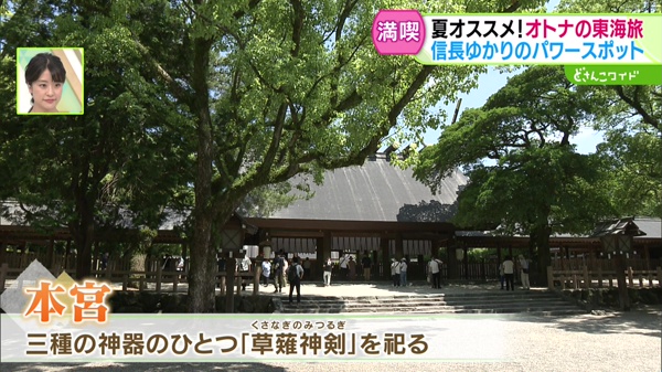 新千歳空港から、直行便でおよそ1時間45分。愛知県の中部国際空港へ。まずは1900年以上の歴史を誇る“熱田神宮”へ向かいました。地元では“あつたさん”と呼ばれて親しまれている由緒ある神社です。